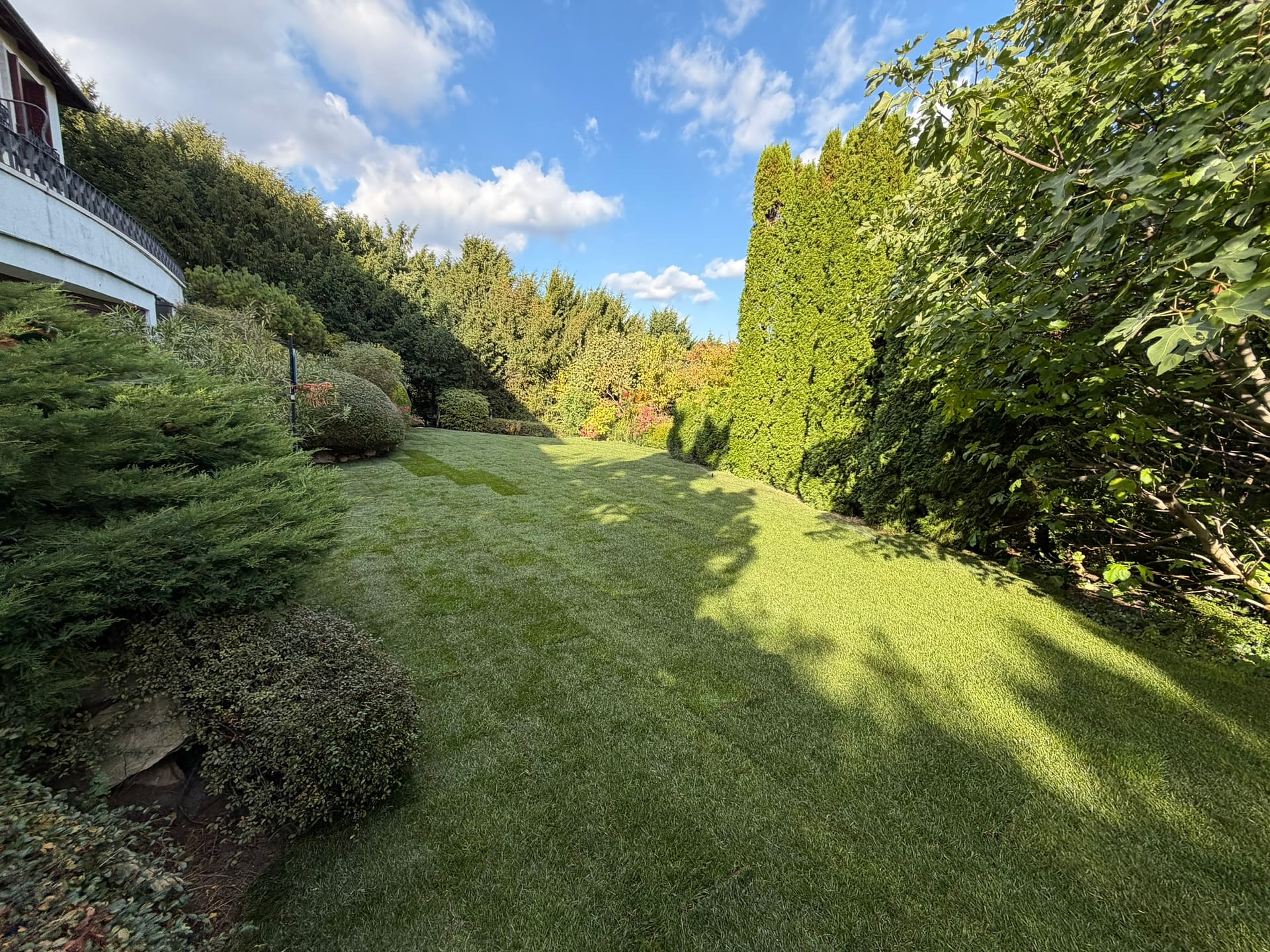 Ebben a budai, elegáns ingatlanban a tulajdonos egy régi álmát szerette volna megvalósítani: egy friss, hibátlanul zöld gyepet, amely méltó a ház hangulatához és minden nap örömet ad a kertre nézve.